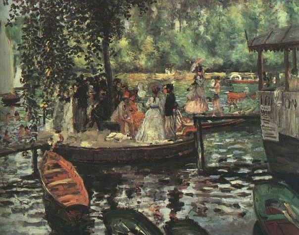 Пьер Огюст Ренуар «Лягушатник»,1869 Национальный музей Швеции, Стокгольм Импрессионизм «Лягушатник» (фр. La Grenouillère) — картина французского художника Пьера Огюста Ренуара, написанная в 1869 году.«Лягушатник» представлял собой кафе на воде, размещавшееся на пришвартованном к берегу Сены понтоне, стоявшем в небольшом рукаве реки и соединявшемся с островом переходным мостиком, перекинутым через крохотный островок. В этом месте на Сене между Шату(фр. Chatou) и Буживалем к северо-западу отПарижа была целая группа островов, куда парижане… Подробнее »