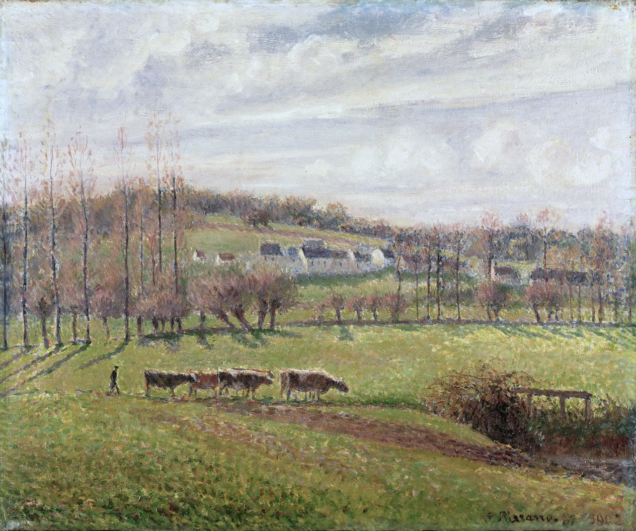 Камиль Писсарро «Летний пейзаж, Эрагни», 1902 Музей искусств Филадельфии, США Импрессионизм Первую версию картины Писсарро написал под влиянием пуантилистского стиля Жоржа Сёра. Пейзаж был написан маленькими цветными точками и был датирован 1887 годом. Полотно оставалось в мастерской художника, где по истечении нескольких лет было повреждено. Писсарро отреставрировал работу и добавил вторую дату 1902 года. К… Подробнее »