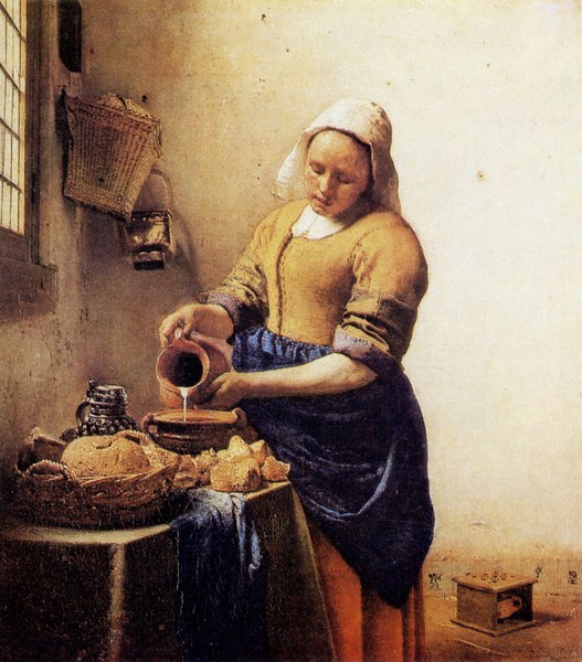 Ян Вермеер Делфтский «Служанка с кувшином молока», 1660 Рейксмузеум, Амстердам Барокко Это полотно голландского художника известно также под названиями «Молочница», «Кухарка», «Девушка с кувшином молока», «Молодая женщина, наливающая молоко». Картина Вермеера «Служанка с кувшином молока» выделяется среди прочих подобных произведений нидерландской живописи своей жизненностью и композиционной простотой. Картины с жанровыми сценами простого повседневного быта уже… Подробнее »