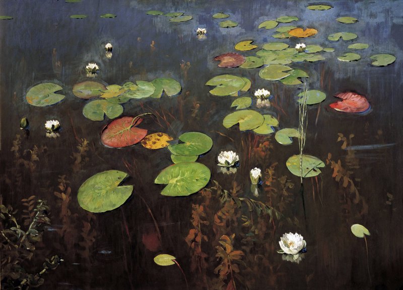 Исаак Ильич Левитан «Лилии. Ненюфары», 1895 Реализм Лето, проведённое художником в Витебской области, в Островно, было наполнено восхитительными эмоциями от наслаждения красотой природы. Здесь можно было предаться философским размышлениям, разгадывая тайны жизни. По убеждению, жизнь после смерти была похожа на глубокий омут. Из-за серьёзных проблем с сердцем, его часто преследовали подобные мысли. На этом полотне… Подробнее »