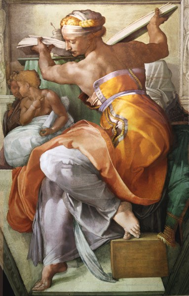 Микеланджело Буонарроти «Ливийская Сивилла», 1508-1512 Фрагмент фрески потолка. Сикстинская капелла. Ватикан, Рим Возрождение Сикстинская капелла, построенная архитектором Джованнио де Дольчи, является ценнейшим художественным, историческим и религиозным памятником. Живопись плафона Сикстинской капеллы, выполненная титаном Высокого Возрождения Микеланджело Буонарроти, оказала огромное влияние на все последующее искусство. По сторонам от главных сцен центральной части росписи, по замыслу художника,… Подробнее »