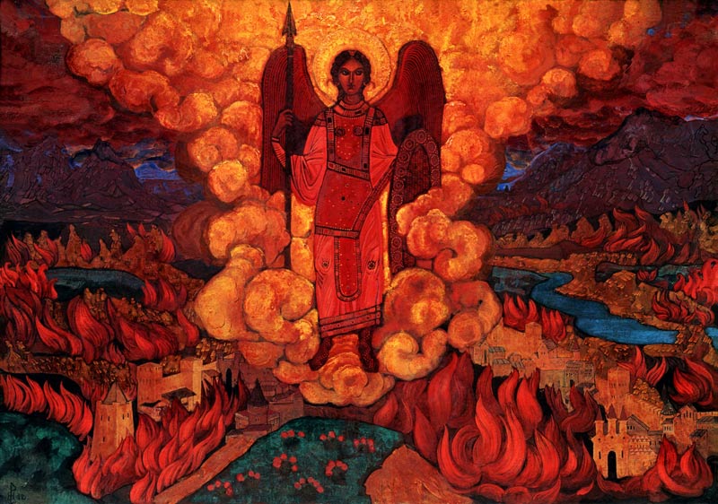 Николай Константинович Рерих «Ангел последний», 1912 Музей Николая Рериха, Нью-Йорк Модерн Перед Первой Мировой войной в искусстве Николая Константиновича с особой силой прозвучала тема возмездия, впервые раскрытая в полотне «Ангел последний» (1912). Над объятой пламенем землей — непреклонно стоящий среди клубящихся огненных облаков ангел, воздающий по заслугам за все содеянное зло, а на далеком горизонте… Подробнее »