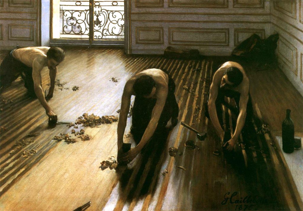Гюстав Кайботт «Паркетчики», 1875 Музей Орсе, Париж, Франция Реализм Считают, что Кайботт писал эту картину в собственной парижской студии на улице Миромениль (77, rue de Miromesnil), когда работавшие там паркетчики завершали установку нового пола. По документам, работа над студией была начата в конце 1874 года и завершена к маю 1875 года — это приблизительно соответствует… Подробнее »