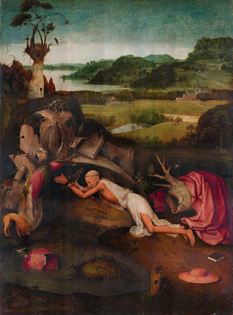 Иероним Босх «Святой Иероним за молитвой», 1505 Музей изящных искусств, Гент, Бельгия Северное возрождение Сюжет картины посвящён подвигу созерцательной жизни. Фигура святого изображена на фоне пустынного пейзажа; огромные плоды, окружающие пещеру отшельника, символизируют множество искушений, подстерегающих душу верующего на его земном пути. Св. Иероним, простёршись ниц, сжимает в руках распятие, не заботясь о том, что… Подробнее »