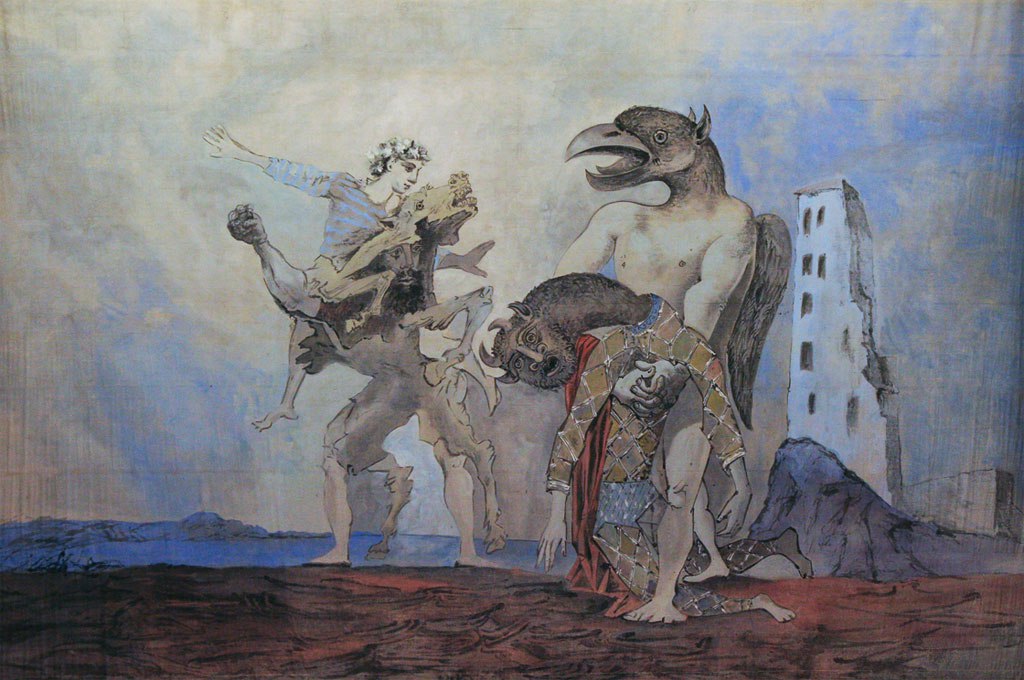 Пабло Пикассо «Мертвый Минотавр в костюме Арлекина», 1936 Les Abattoirs, Тулуз, Франция Сюрреализм Это масштабное произведение — занавес для спектакля «Le 14 Juillet» Ромена Роллана», поставленного в 1936 году. Пикассо работал с помощником — другом и художником Луисом Фернандесом. Занавес — это увеличенная в несколько раз гуашь Пикассо, размером 44,8 x 54,5 см, написанная 28… Подробнее »