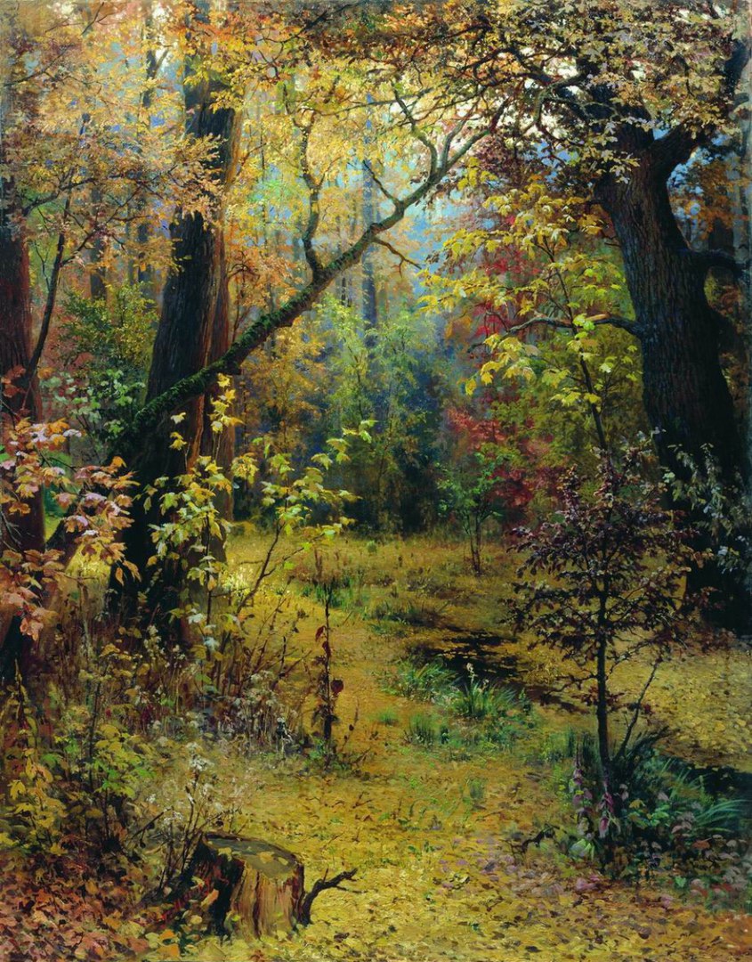 Григорий Григорьевич Мясоедов «Осеннее утро», 1893 Третьяковская галерея, Москва Реализм Перед нами лес, щедро раскрашенный осенью. Ручеек, спрятавшийся в опавших листьях, словно укрывается одеялом в ожидании зимних морозов. Островки летней зелени еще напоминают о теплой и сухой поре. Небо скрыто листвой и ветками, но, судя по всему, день будет ясным. Густое и тягучее осеннее солнце… Подробнее »