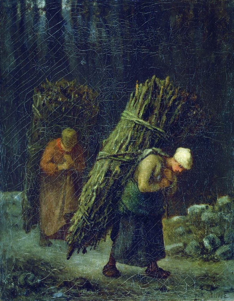 Жан-Франсуа Милле «Крестьянки с хворостом», 1852 Эрмитаж, Санкт-Петербург Реализм «Крестьянки с хворостом» — одна из типичных работ Милле, посвятившего свой талант художника изображению сцен из крестьянской жизни. Крестьянин по происхождению, Милле на собственном опыте знал суровые будни людей труда. Две женщины в грубой домотканой одежде и деревянных сабо, изнемогая под тяжестью непосильного груза, возвращаются в… Подробнее »