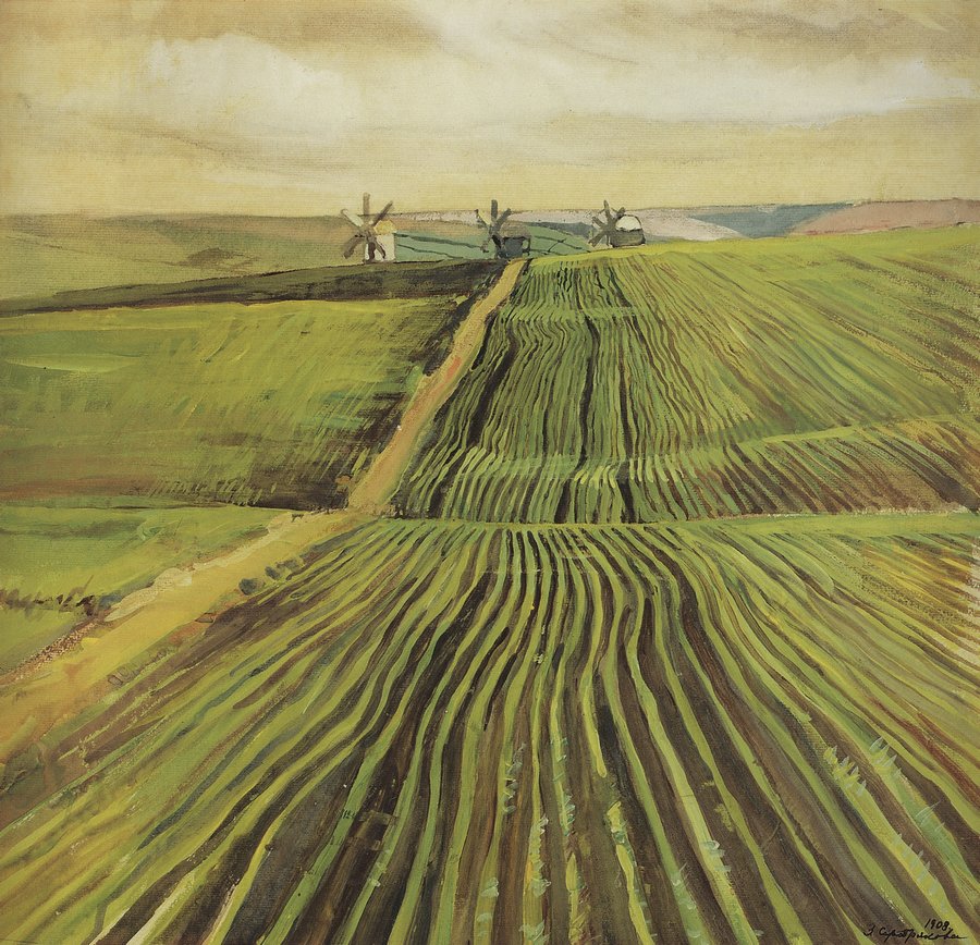 Зинаида Евгеньевна Серебрякова «Зеленя осенью», 1908 Третьяковская галерея, Москва Импрессионизм, пейзаж На 7-й выставке русских художников в Москве, состоявшейся в 1910 году и принесшей Серебряковой известность, Третьяковской галереей, вместе с автопортретом «За туалетом», была приобретена и гуашь «Зеленя осенью», выполненная в Нескучном. Совершенство техники, свежесть колорита и чистота тонов — первое, что обращает на себя… Подробнее »