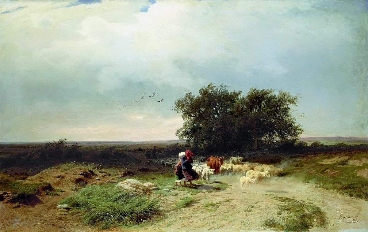 Фёдор Васильев «Возвращение стада», 1868 Государственная Третьяковская галерея, Москва Реализм Лето 1868 года 18-летний Фёдор Васильев провёл вместе с художником Иваном Шишкиным в деревне Константиновка, расположенной рядом с Красным Селом, недалеко от Петербурга (ныне входит в состав района Горелово). Его работы этого периода связаны с темой деревенского пейзажа. Помимо картины «Возвращение стада», в том же… Подробнее »