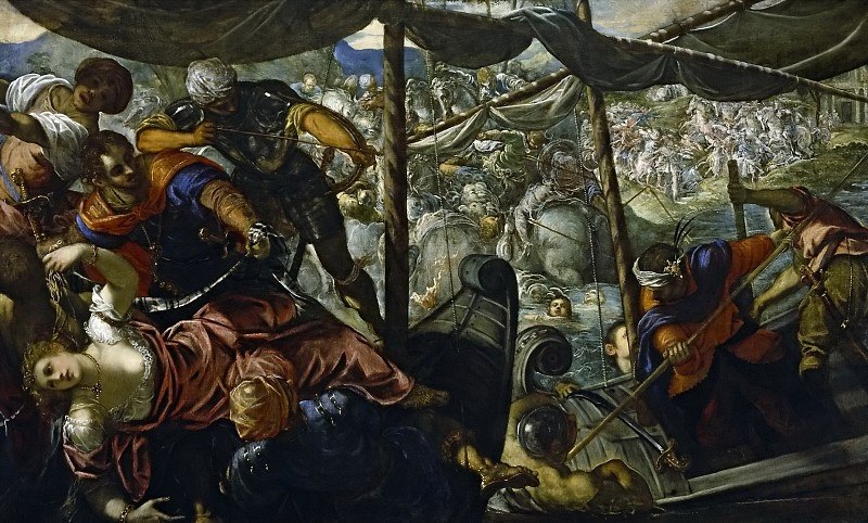 Тинторетто «Похищение Елены», около 1578 Музей Прадо, Мадрид Венецианская школа, позднее возрождение На картине изображён миф о похищении Елены Прекрасной Парисом, действие которого перенесено в современную художнику Европу XVI века. Возможно, мотив именно морского сражения был навеян битвой при Лепанто, произошедшей 7 октября 1571 года в Патрасском заливе у мыса Скрофа. Тогда объединённые силы Священной… Подробнее »