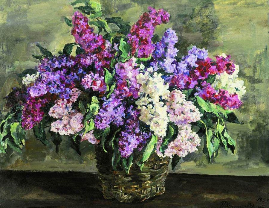 Петр Петрович Кончаловский «Сирень в корзине», 1933 Третьяковская галерея, Москва Импрессионизм, цветочный натюрморт Кончаловский считается художником, использовавшим все буйство красок в своем творчестве. Ярким примером этого утверждения является его работа «Сирень в корзине». Художник применил при ее написании сочные краски, с помощью которых ему замечательно удалось передать красоту цветов. На картине изображен букет сирени в… Подробнее »