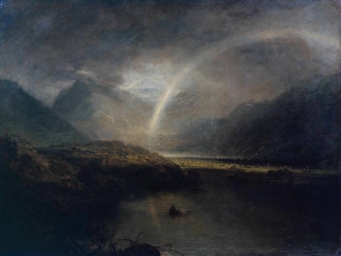 Уильям Тернер «Озеро Баттермир, с радугой и ливнем», 1798 Тейт Британ, Лондон, Великобритания Романтизм Работа «Озеро Баттермир, с радугой и ливнем» – очередной, довольно ощутимый шаг в совершенствовании мастерства. Тернеру нравилось изображать радугу, но в этой картине она представлена со своим отражением на воде. Хотя в пространстве радуга места не занимает, и ее отражение просто… Подробнее »