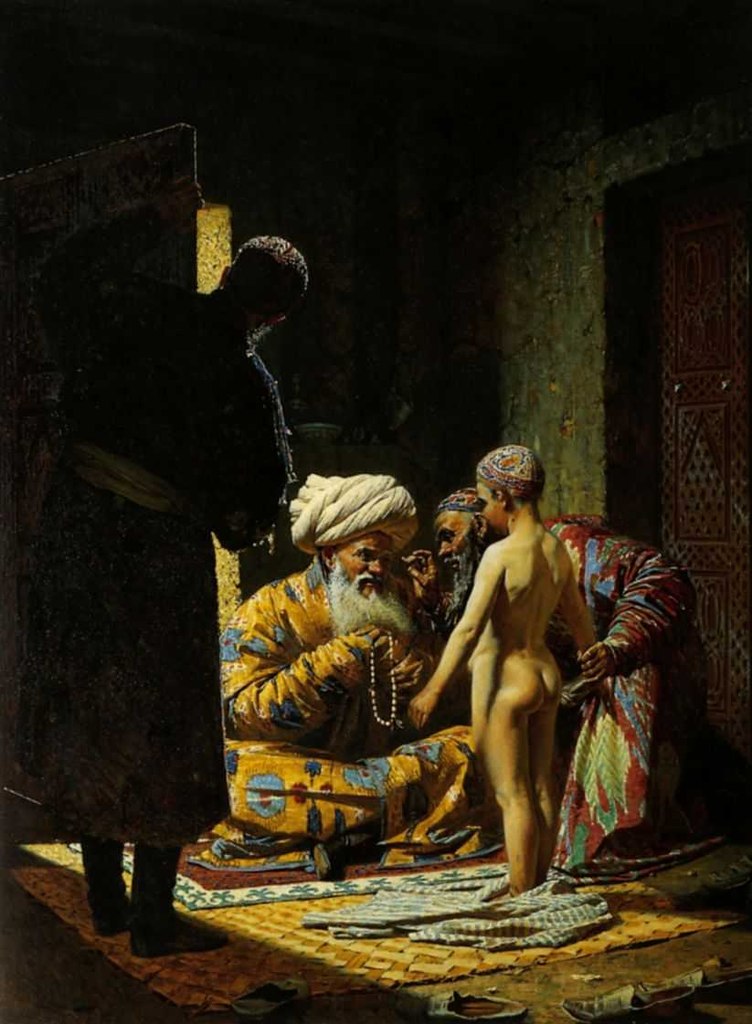 Василий Верещагин «Продажа ребенка-невольника», 1872 Третьяковская Галерея, Москва Реализм 1870 годах Верещагин вновь путешествовал по Туркестану. В результате этих полных опасностей и приключений путешествий художник создал огромную серию этюдов и рисунков, отображающих жизнь и быт народов Средней Азии накануне и в период русского завоевания. Надо иметь в виду, что в это время в Туркестане господствовали… Подробнее »