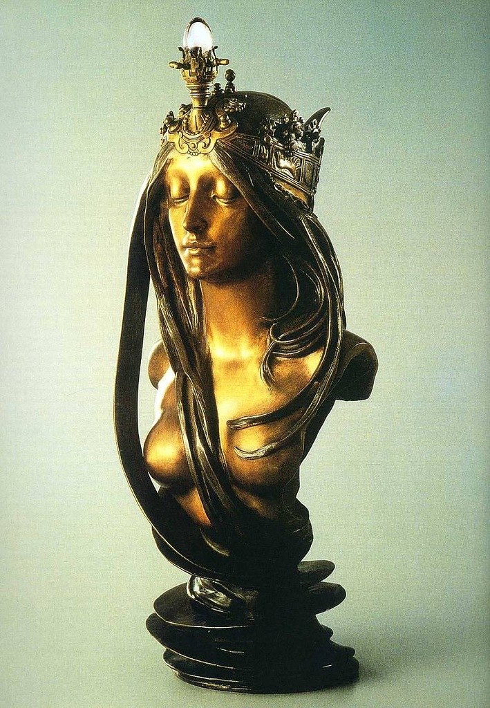 Альфонс Муха «Природа», 1899—1900 Бронза, серебро, золото. Высота: 70,7 см Модерн Этот роскошный декоративный бюст из бронзы, серебра и золота был создан художником в 1899 году. Бюст была изготовлен Мухой для Всемирной выставки, проходившей в Париже в 1900 году, и по праву считается шедевром скульптуры конца 19 – начала 20 века. Великолепные золотые локоны, спадающие… Подробнее »