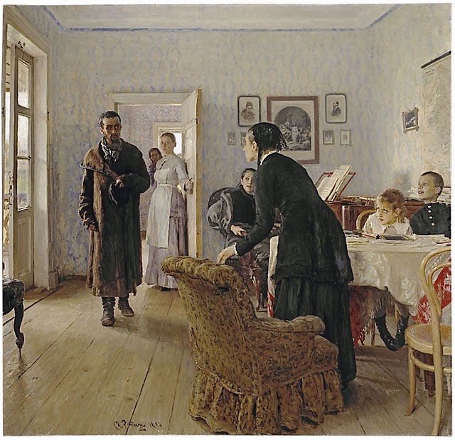 Илья Ефимович Репин «Не ждали», 1884—1888 Государственная Третьяковская галерея, Москва Реализм На картине изображён момент, когда в квартиру неожиданно для присутствующих заходит мужчина — возвратившийся из далёких краёв политический ссыльный. Очевидно, его не ожидали, и поэтому различна первая реакция членов семьи на его возвращение. Несомненна радость женщины за фортепьяно (видимо, его жены) и мальчика, сидящего… Подробнее »