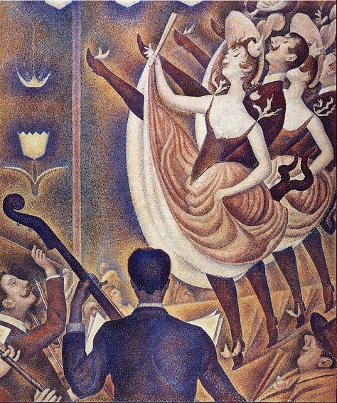 Жорж-Пьер Сёра «Канкан», 1889-1890 Музей Креллер-Мюллер, Оттерло Пуантилизм Приблизительно с 1887 года Сёра начал делать зарисовки в парижских варьете. В результате считавшийся не слишком пристойным танец канкан стал темой одной из его работ. На полотне изображен ночной клуб «Японский диван», находившийся неподалеку от студии художника. В этом произведении звучит отчетливое эхо «Парада», где реальный зритель… Подробнее »