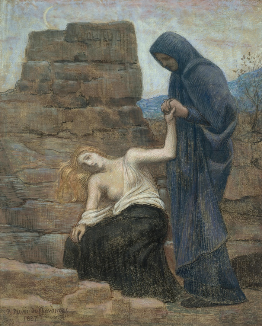 Пьер Пюви Де Шаванн «Сострадание», 1887 Государственный музей изобразительных искусств имени А.С. Пушкина, Москва Символизм В картине «Сострадание» Пюви де Шаванн изобразил встречу отчаяв­шейся падшей женщины, символизирующей раскаяние, с монахиней, суть которой милосердие. Ощущение неподвижности и величавости, многозначительной тишины достигается упрощенностью и лаконичностью художественного языка. Пюви де Шаванн не пытается поучать своим искусством, но прежде… Подробнее »