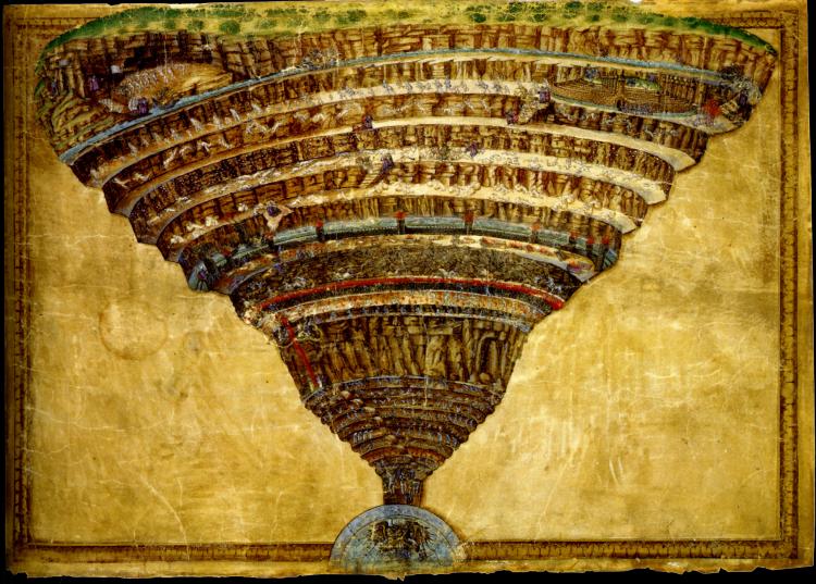 Сандро Ботичелли «Бездна Ада», 1480 Ватиканская апостольская библиотека, Ватикан Раннее Возрождение Иллюстрация к «Божественной комедии» Данте. Данте описывал Ад как пропасть с девятью кругами, которые, в свою очередь, делятся на различные кольца. Боттичелли на своей «Карте Ада» представил царство грешников с такой тонкостью и точностью, что можно проследить отдельные остановки, которые, по сюжету «Божественной комедии»,… Подробнее »