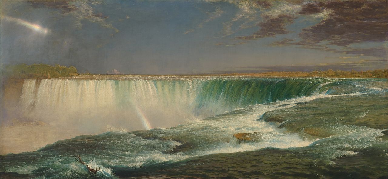 Фредерик Эдвин Чёрч «Ниагара», 1857 Галерея Коркорана, Вашингтон Романтизм, пейзаж На картине изображён вид с канадской (то есть, с западной) стороны на Ниагарский водопад — точнее, на его часть, называемую «Подковой». Изображение водопада занимает бо́льшую часть картины. На картине нет практически ничего созданного человеческими руками — только красота и могущество природы, дополненные мастерски созданным впечатлением… Подробнее »