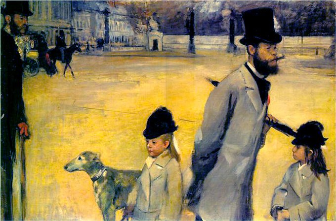 Эдгар Дега «Площадь согласия» (Портрет виконта Лепика с дочерьми)», 1875 Государственный Эрмитаж, Санкт-Петербург Импрессионизм Полотно «Портрет виконта Лепика с дочерьми», известное также как «Площадь согласия», представляет собой и портрет, и городской пейзаж, и зарисовку, выполненную в жанре импрессионизма, с фотографической правдивостью зафиксировавшую момент из парижской жизни. Дега запечатлел своего друга, аристократа Людовика Лепика, человека талантливого… Подробнее »