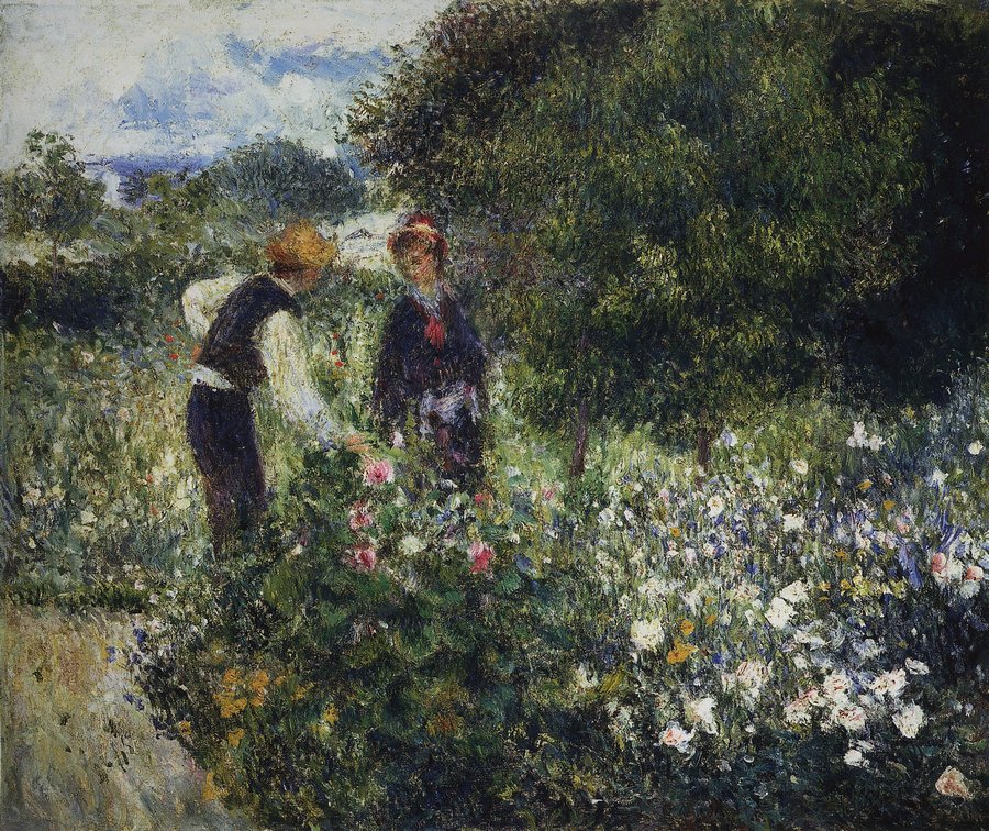 Пьер Огюст Ренуар «Сбор цветов (Разговор с садовником)», около 1875 Национальная галерея искусств, Вашингтон Импрессионизм Это произведение Ренуара невольно навевает воспоминания о весне и солнце, о запахе цветов в саду и молодости. Картина состоит из ярких мазков, которые складываются в образы дамы и молодого человека, в розы, цветущие кусты и траву. Живописец создает мистическое ощущение… Подробнее »