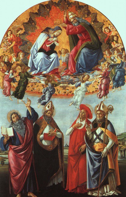 Сандро Боттичелли «Алтарь Сан Марко», около 1480 Галерея Уффици, Флоренция Возрождение Гильдия флорентийских ювелиров около 1480 г. заказала Боттичелли расписать алтарь для своей церкви Сан Марко, посвященной покровителю гильдии св. Элигию. Этот святой в облачении епископа, с посохом в руках, стоит справа в группе из четырех святых; он смотрит прямо на зрителей, и его правая… Подробнее »