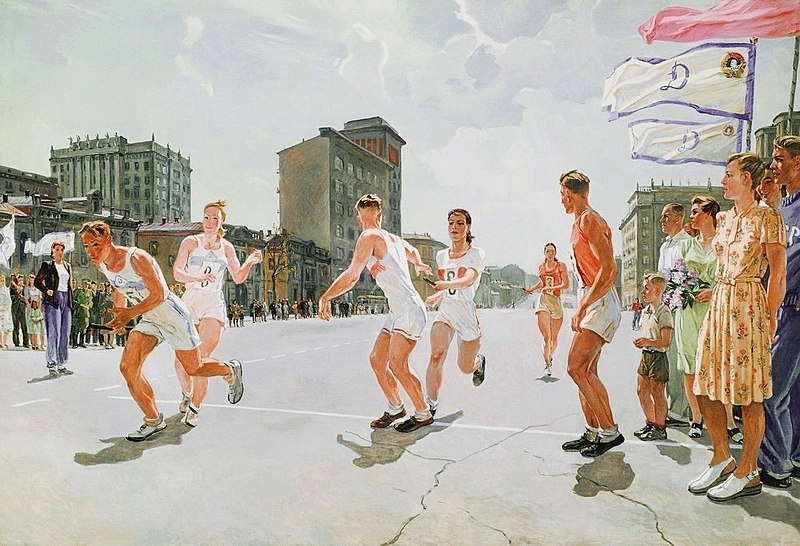 Александр Дейнека «Эстафета», 1947 Государственная Третьяковская галерея, Москва Социалистический реализм Картина была представлена на многочисленных всесоюзных, всероссийских и международных выставках. На Всемирной выставке 1958 года в Брюсселе Александр Дейнека за неё и другие его работы был награждён золотой медалью выставки. Художник создал картину после возвращения из поездки в Вену. В 1947 году он проживал в… Подробнее »