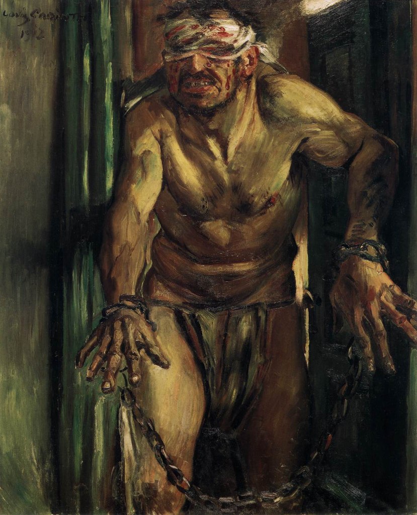 Ловис Коринт «Ослепленный Самсон», 1912 Государственный музей, Берлин Экспрессионизм Самсон Коринта не только закован в кандалы, его тело словно заперто между вертикальными элементами: дверью справа и похожей на колонну конструкцией слева (напоминание о колоннах храма филистимлян, который он разрушил, когда вернул себе силу). Эти вертикали окружают Самсона, стесняют его движения, а рама картины давит сверху… Подробнее »