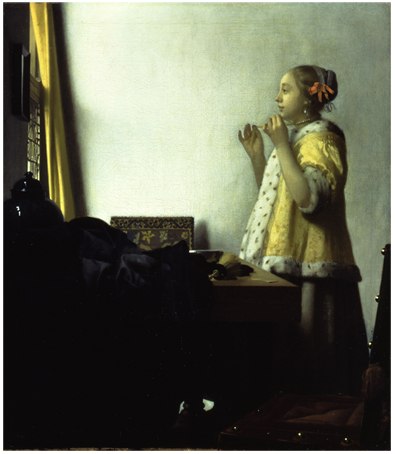 Ян Вермеер «Девушка, примеряющая ожерелье», 1662-1664 Картинная галерея, Берлин-Далем Жемчуг в европейской классической живописи имеет несколько противоречивую иконографию. С одной стороны, он был признаком тщеславия и кокетства. Но одновременно жемчуг символизировал девственность. В руках у женщины ленты ожерелья. В 17 столетии еще не были изобретены ювелирные застежки, и подобные украшения просто завязывались лентами. Желтая занавеска… Подробнее »