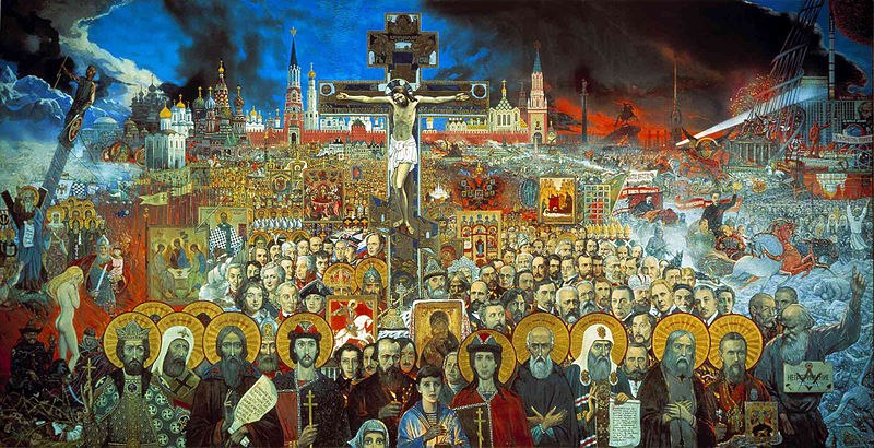 Илья «Вечная Россия», 1988 Музей Глазунова, Москва Закончена автором в Москве в 1988 году. Первоначально называлась «Сто веков», позже была переименована в «Вечную Россию». Этапное полотно в творчестве художника как по замыслу и композиции, так и по количеству представленных на нём государственных и политических деятелей, полководцев, деятелей науки и культуры России разных эпох. Как пишет… Подробнее »