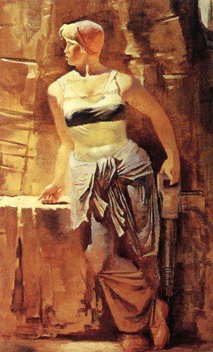 Александр Николаевич «Метростроевка со сверлом», 1937 Русский музей, Санкт-Петербург Самохвалов всегда стремился быть в центре важнейших событий своего времени, одним из которых стало строительство метро в середине 1930-х годов. Он мечтал изобразить строительниц метро в технике фрески, но этим мечтам не суждено было осуществиться. В 1937 году художник создал на основе листа акварели картину маслом… Подробнее »
