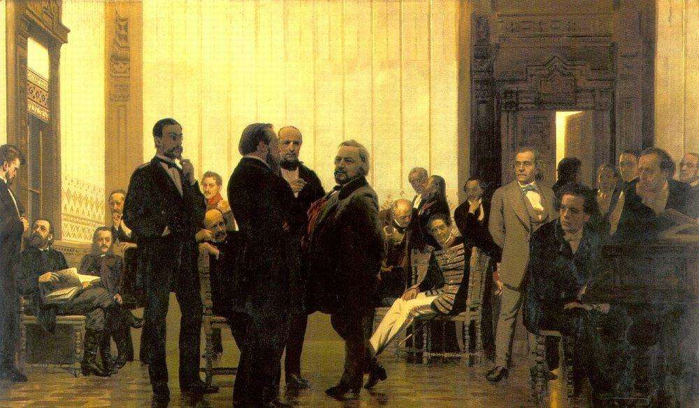 Илья Ефимович «Славянские композиторы», 1872 Московская государственная консерватория, Москва «Славянские композиторы» — групповой портрет славянских (русских, польских и чешских) композиторов, написанный Ильёй Репиным в 1871-72 годах по заказу московского предпринимателя А. А. Пороховщикова. Список композиторов для Пороховщикова составлял Николай Рубинштейн, руководствовавшийся своими личными музыкальными пристрастиями. Большая часть композиторов, изображённых на картине, к моменту её создания… Подробнее »