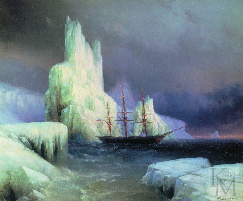 Иван Константинович «Ледяные горы в Антарктиде», 1870 В 1870 году, когда отмечалось пятидесятилетие открытия Антарктиды русскими мореплавателями Ф.Ф.Беллинзгаузеном и М.П. Лазаревым, Айвазовский написал первую картину, изображающую полярные льды — Ледяные горы в Антарктиде. Во время чествования Айвазовского по случаю пятидесятилетия его творчества П.П.Семенов-Тян-Шанский в своей речи сказал: «Русское географическое общество давно признало Вас, Иван Константинович,… Подробнее »