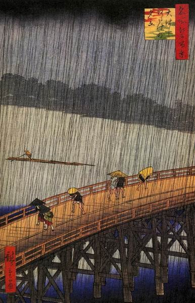 Андо «Ливень над мостом Охаси, местность Атакэ» Хиросигэ изображает в этой гравюре мост «Син-Охаси», что означает «Новый Большой Мост». Мост Охаси был построен на реке Сумидагава, он находился недалеко от моста Рёгокубаси, но старое название Рёгокубаси было Охаси, поэтому новый мост стали называть Син-Охаси — Новый Охаси. Мост был построен в 1693 году по приказу… Подробнее »