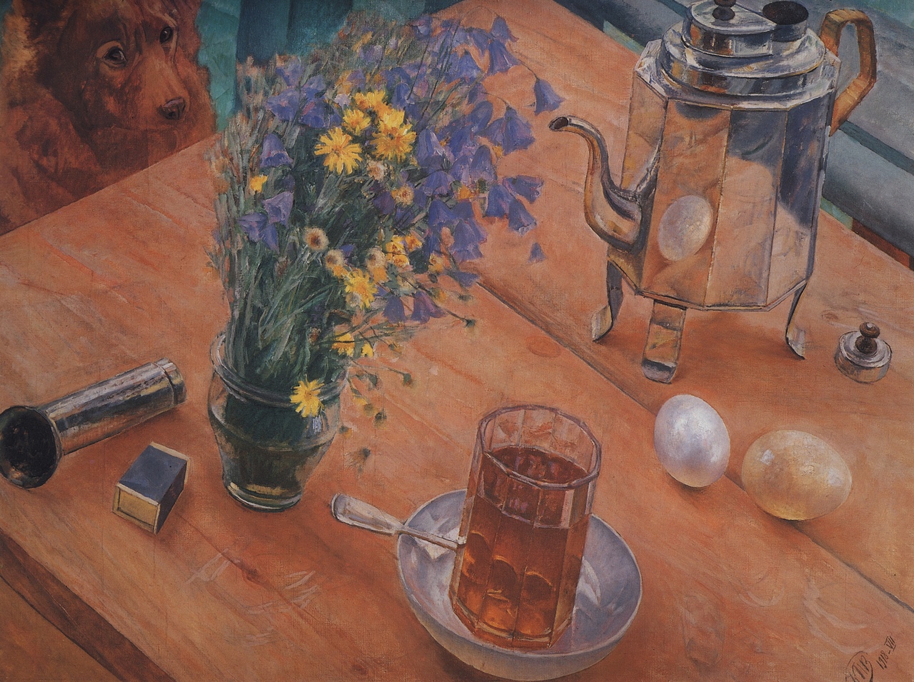 Кузьма Сергеевич Петров-Водкин «Утренний натюрморт», 1918 Русский музей, Санкт-Петербург Символизм В первые послереволюционные годы Петров-Водкин часто обращался к натюрморту, находя в этом жанре богатые экспериментальные возможности. Предметный мир его натюрмортов – именно мир, малый космос. Взятые с высокой точки зрения, в ясно обозримых пространственных отношениях, предметы активно взаимодействуют, общаются друг с другом на своем языке…. Подробнее »