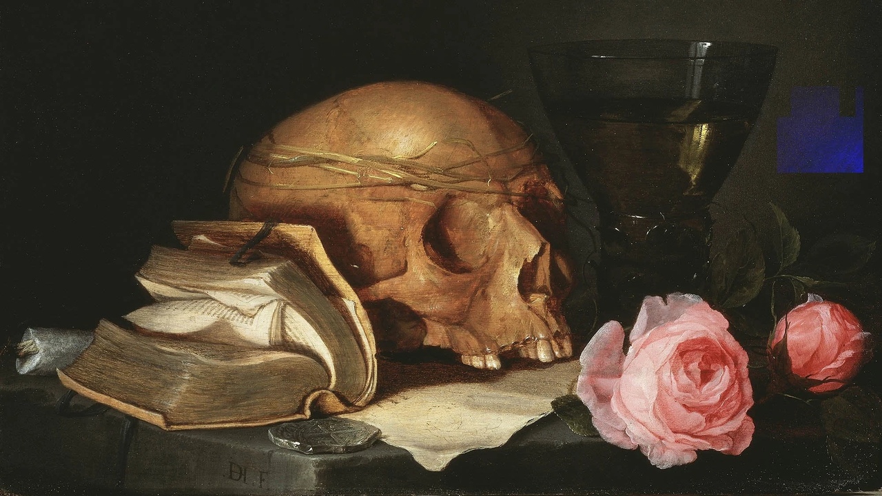 Ян Давидс де Хем «Натюрморт с черепом, книгой и розами», 1630 Национальный музей, Стокгольм Барокко