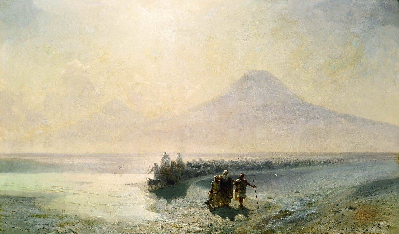Иван Константинович Айвазовский «Сошествие Ноя с горы Арарат», 1889 Национальная галерея Армении, Ереван Романтизм На картине изображён один из эпизодов ветхозаветной истории: Ной возвращается на землю после Всемирного потопа. Вместе с ним с Араратских гор спускаются его сыновья, жена, жёны сыновей и многочисленные животные, спасшиеся от потопа благодаря ковчегу. Впервые картина была выставлена в Париже…. Подробнее »