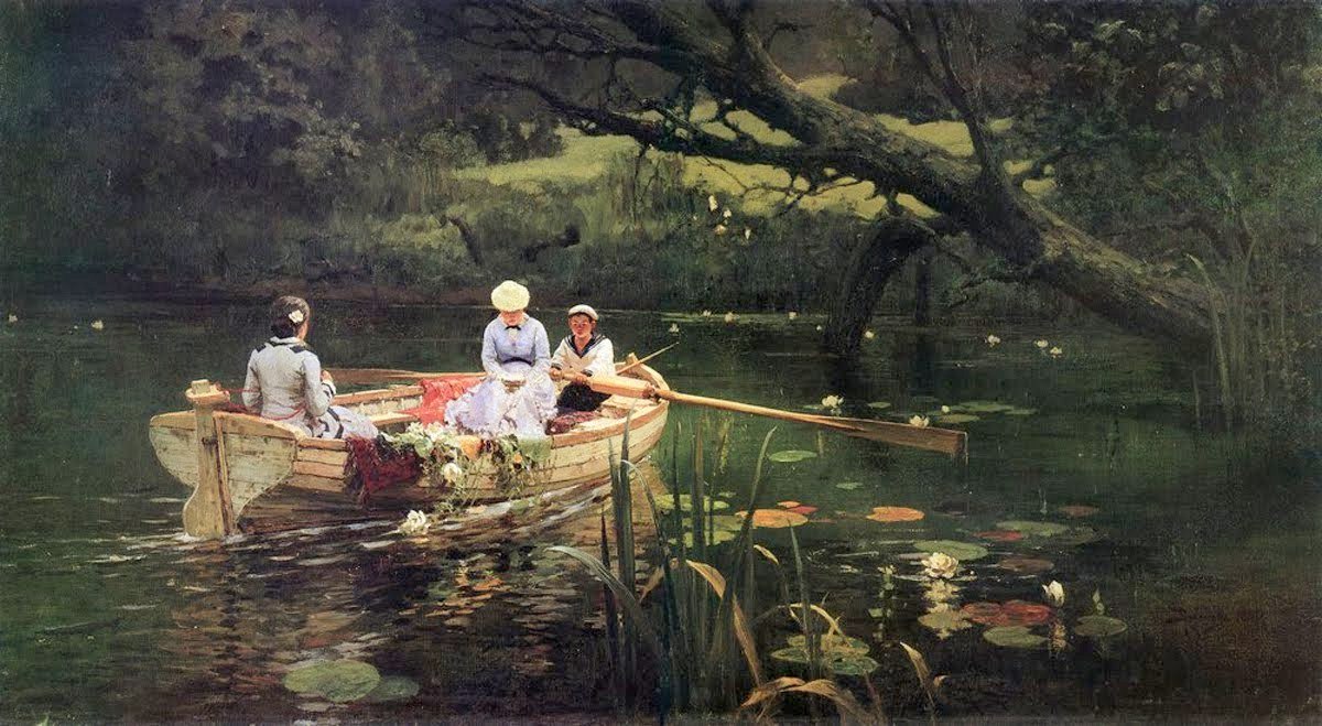 Василий Дмитриевич Поленов «На лодке. Абрамцево», 1880 Киевский национальный музей русского искусства Реализм Эта очаровательная картина кажется фрагментом навсегда исчезнувшего быта, вырванным из контекста и моментально запечатленным гением мастера. Непритязательный сюжет не исключает уникально подробной, качественной проработки каждой детали, которых на полотне великое множество. Две дамы развлекаются катанием в лодке, которой управляет раскрасневшийся от усилий… Подробнее »